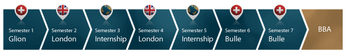 The final year of the bachelor degree focuses exclusively on higher-level management and business administration courses. Currently the London campus offers only one specialization: the BBA in Hospitality Management while the Bulle campus in Switzerland offers the BBA in Hospitality Management and the Bachelor of Arts in Hospitality Management with specializations in Sustainable Development in Tourism, Human Resources, Real Estate Finance and Revenue Management, Sales and Marketing or Event Management.